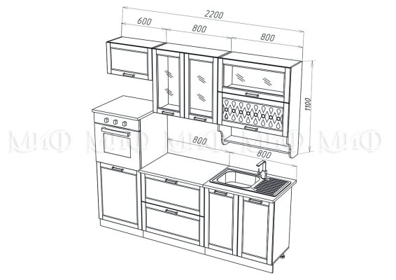 Высота верхних шкафов: 736 мм